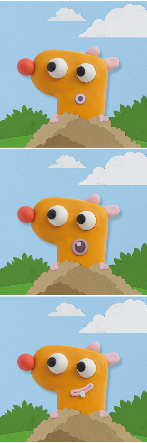 Frames from "Mol and Clo", animation test for a stop motion miniseries for childern.